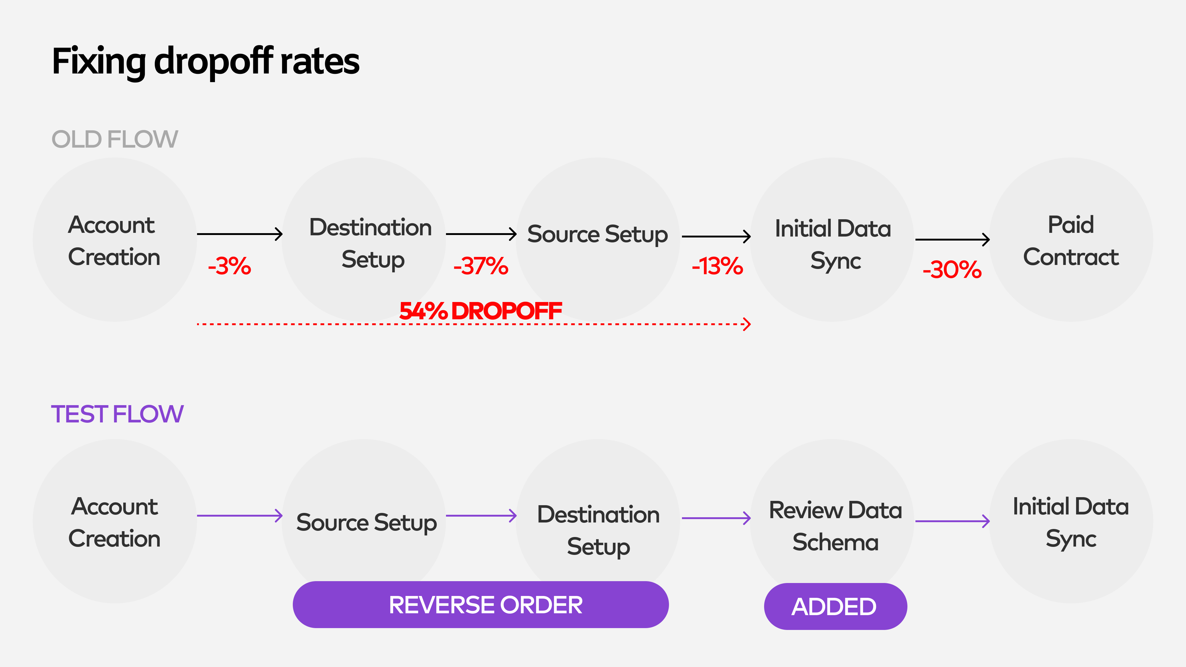 Optimize order of onboarding flow steps / Reduce TTV & Dropoff at key steps